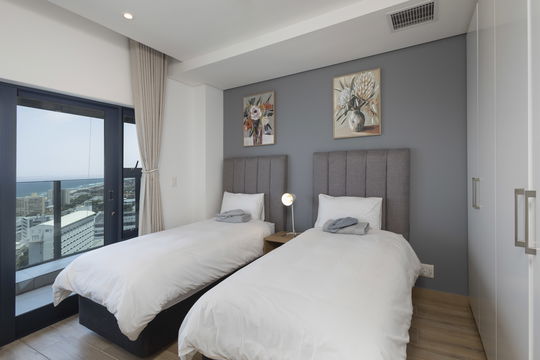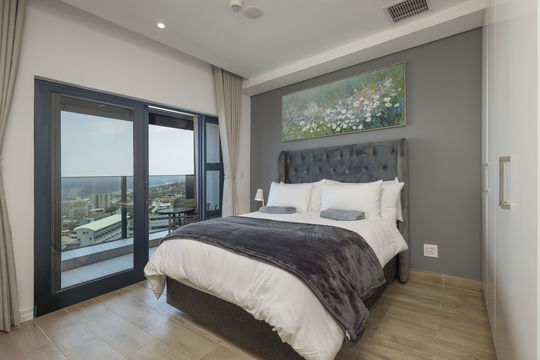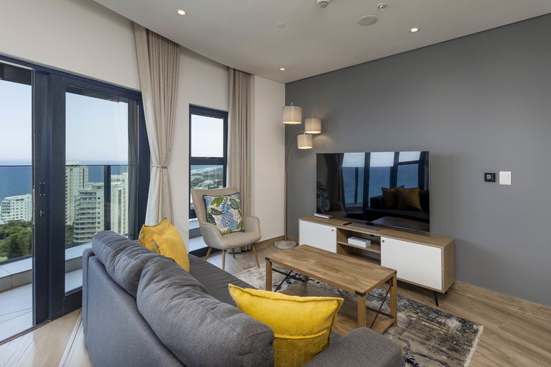 1906 Oceans Apartment in Umhlanga Rocks redefines coastal luxury living. This exquisite 2-bedroom residence frames breathtaking views of the Indian Ocean, seamlessly blending the outdoors with your living space. Designed with both comfort and elegance in mind, the apartment features air-conditioning throughout and interiors that marry modern convenience with refined finishes.